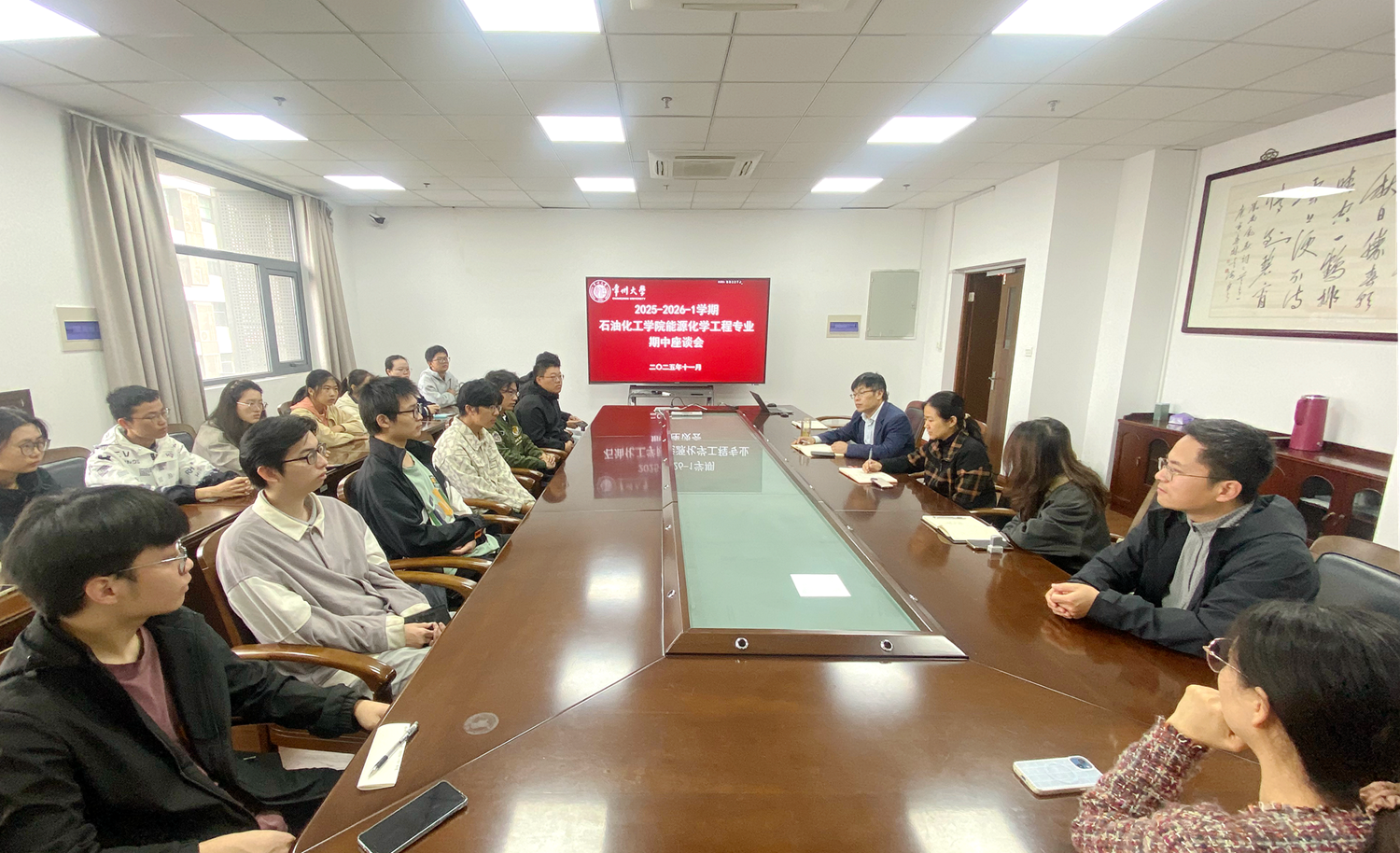 為全面了解教學(xué)動(dòng)態(tài),及時(shí)解決學(xué)生在學(xué)習(xí)過(guò)程中遇到的問(wèn)題,進(jìn)一步提升教學(xué)質(zhì)量,2025年11月11日,我院召開(kāi)了能源化學(xué)工程專業(yè)期中座談會(huì)。專業(yè)負(fù)責(zé)人任慶功、校督導(dǎo)黎珊、專業(yè)教師代表、學(xué)生代表參加會(huì)議。