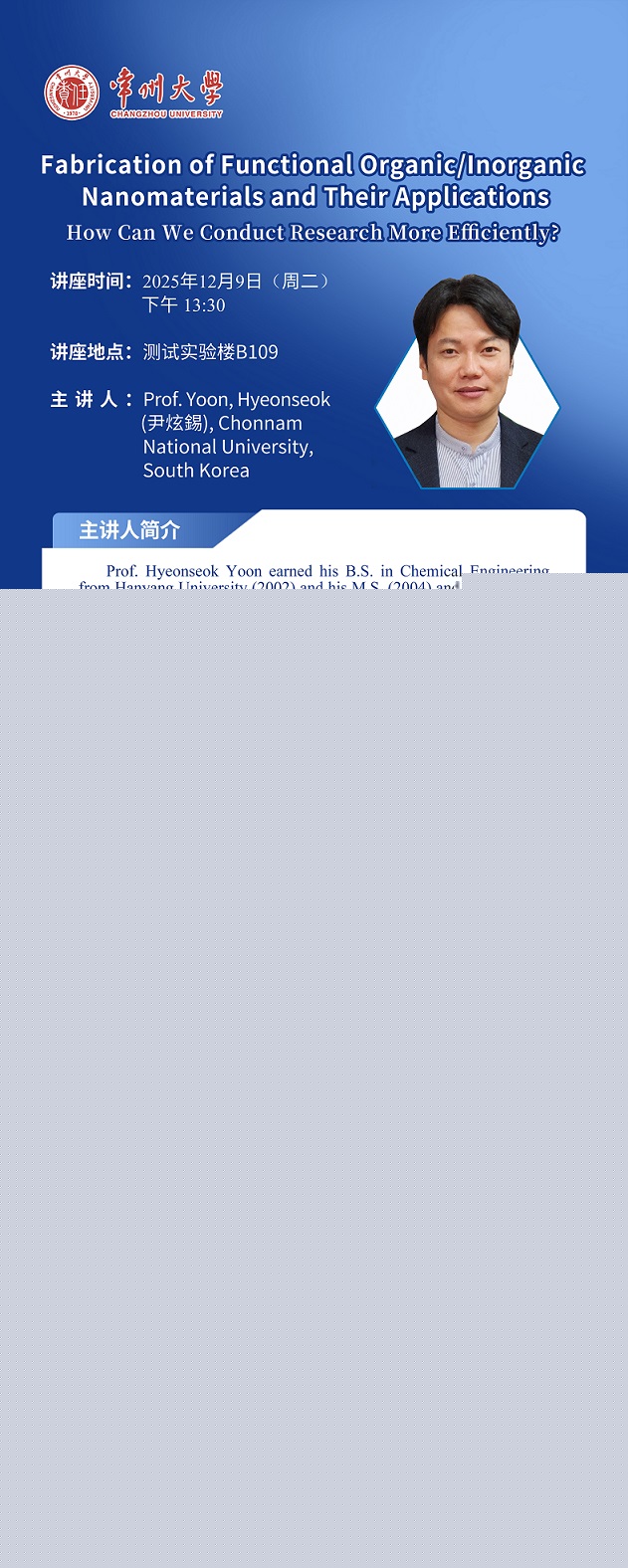 【學(xué)術(shù)報(bào)告】12月9日學(xué)術(shù)報(bào)告——Prof. Yoon, Hyeonseok (尹炫錫) Chonnam National University